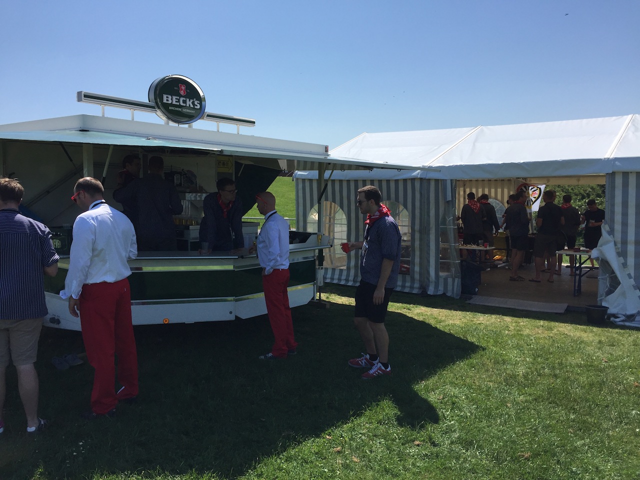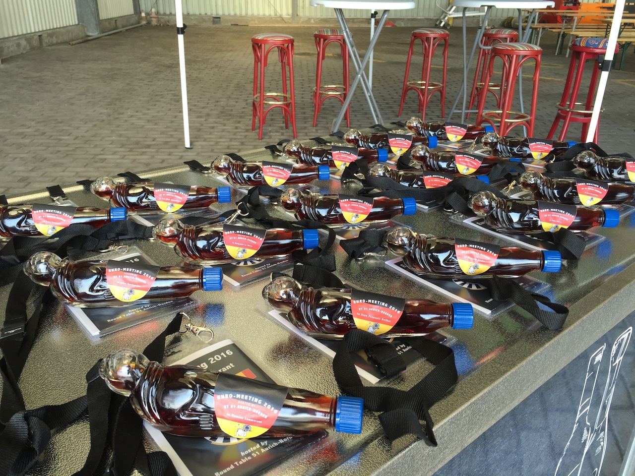 Es war von vornherein klar, dass die Vorbereitungen praktisch bis zum offiziellen Start andauern würden. Davon war ich leider auch nicht ausgenommen, hatte aber mit den Welcome-Packages, dem Bekleben der individuellen Schnaps-Seehunde und dem Ausdrucken der Namensschilder aber auch eine Aufgabe geerbt, die für unsere Gäste die erste Visitenkarte unserer Bemühungen darstellen sollte. Und so wurde ich mit gerade so fertig gewordenen Requisiten am Nachmittag abgeholt, um bei strahlendem Sonnenschein, leichter Bewölkung und erster Belohnung in flüssiger Form zur ersten Euro-Meeting-Destination gebracht zu werden.