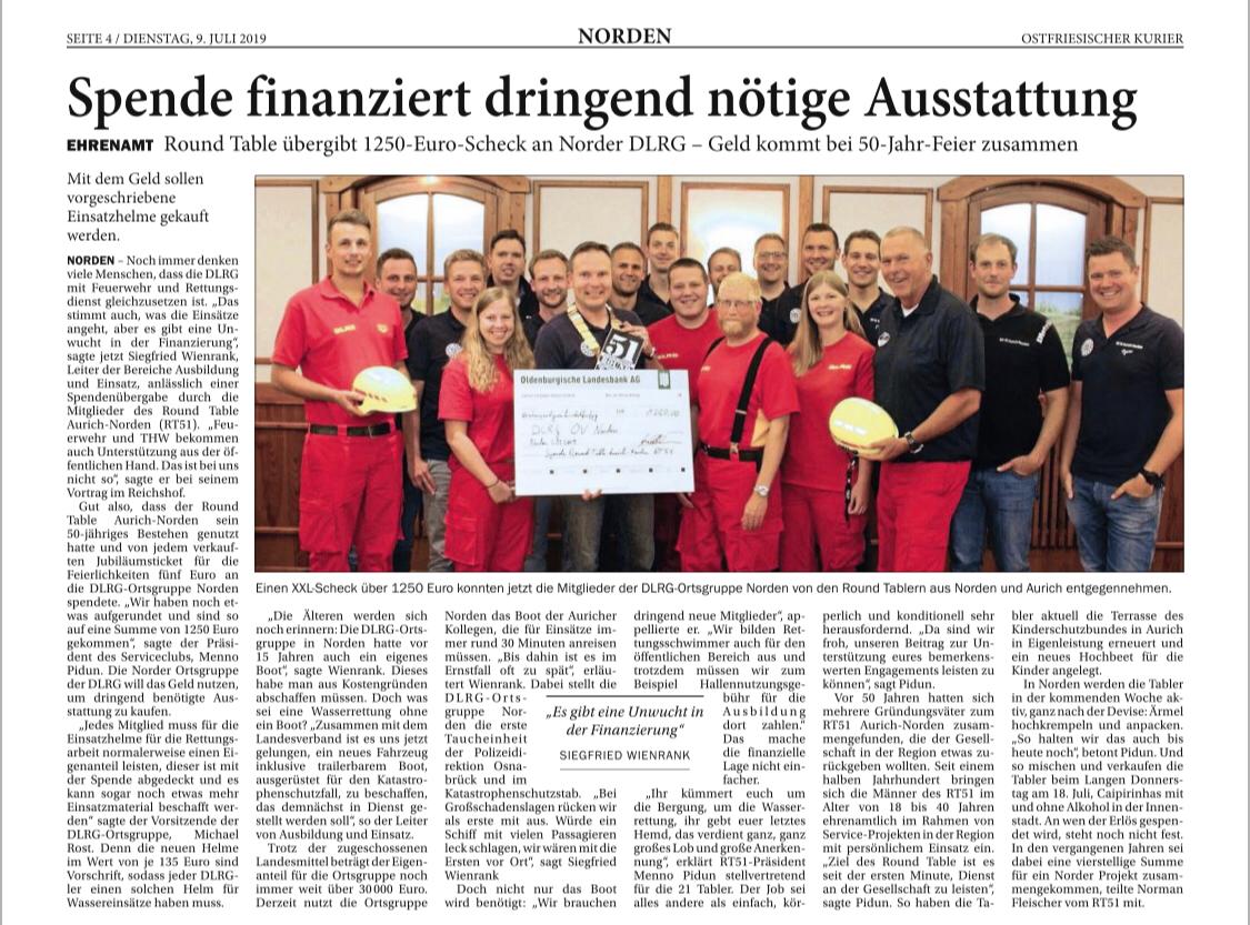 heute ist ein ausführlicher Bericht über die Arbeit der DLRG Ortsgruppe Norden im Norder Kurier erschienen. Wir unterstützen die Freiwilligenarbeit mit einer Spende in Höhe von 1250 €! Macht weiter so Jungs und Mädels!