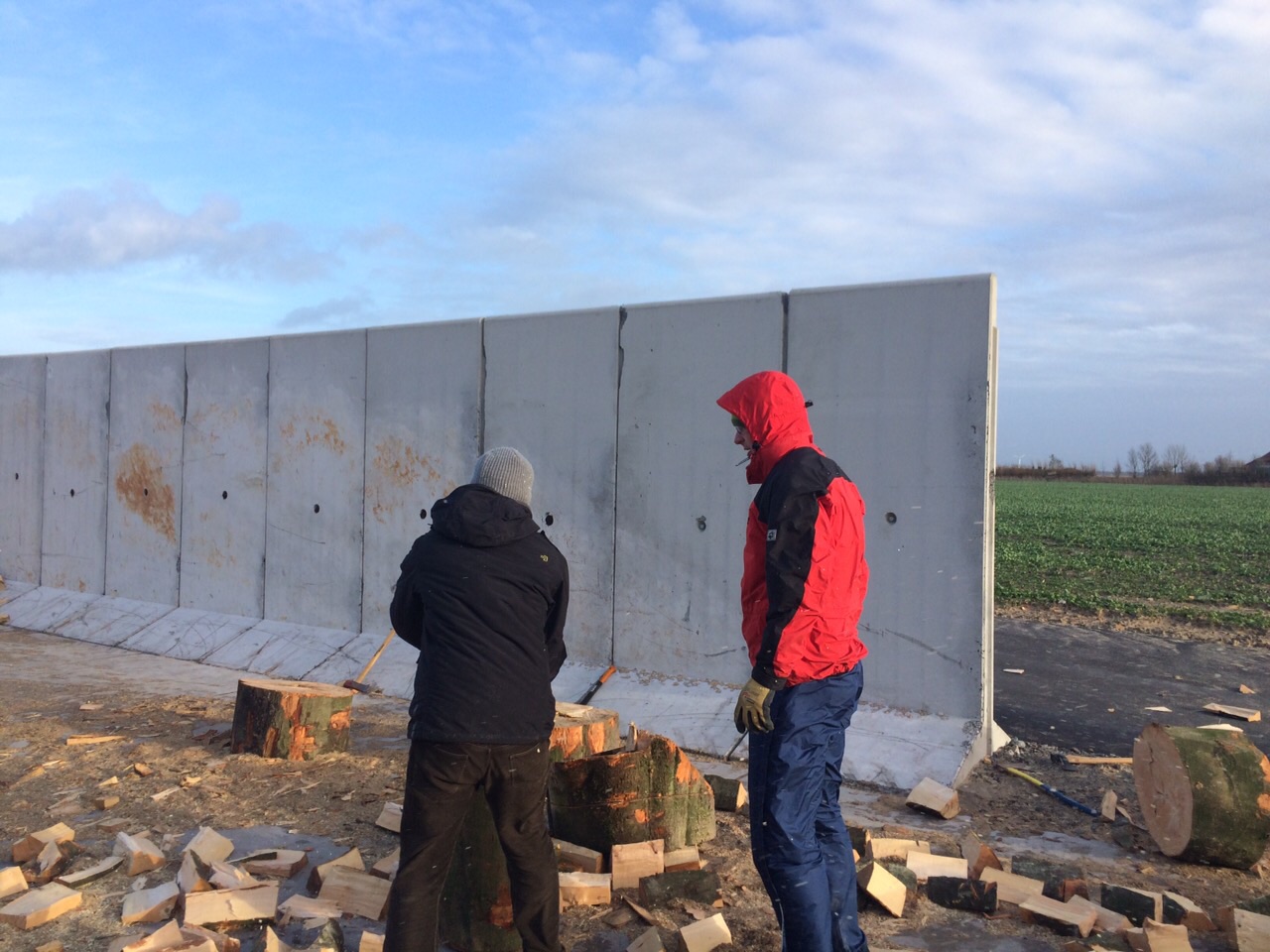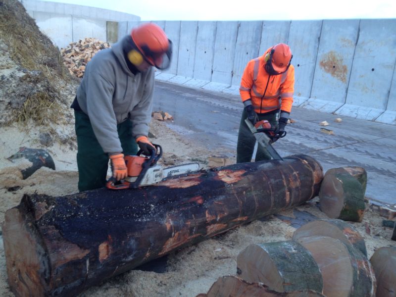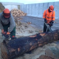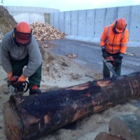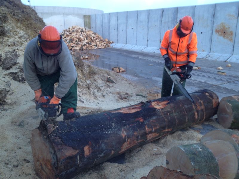Heute war es wieder soweit: Das erste Serviceprojekt 2015 wurde von unseren Tablern sowie Aspirant Jan Schapp erfolgreich abgeschlossen. Bereits im Morgengrauen trafen wir uns heller Erwartung, wer wohl als erstes seine überlastete Motorsäge an die Seite stellen oder obendrein über Rücken- und Armschmerzen klagen würde. Ein erster Kaffee, freundlicherweise von unserem Tabler Jann „Lotti“ Lottmann mitgebracht, sollte diejenigen zum Sägen und Hacken motivieren, die bereits am Vorabend, nun ja, den Haupttag strategisch geplant haben. Mit dem Eintrudeln aller anderen Helfer verscheuchte das erste Motorsägengekreische die warm im Schaffell eingepackten Deichbewohner. Glücklicherweise war die Briese an diesem Tag ausgerechnet so stark, dass die meisten sich über Holzspäne in Augen, Mund und Ohren freuen konnten. Den Höhepunkt des Sturms haben wir für eine stärkende Mittagspause genutzt. Ein herzhafter Bohneneintopf aus dem Hause Reichshof hat uns schließlich für die zweite Tageshälfte fit gemacht. Rund die Hälfte der etwa 60 halben Baumstämme waren zu diesem Zeitpunkt schon gesägt und zum Teil auch schon gehackt. „Erstlinge“, d.h. die Tabler, die ihre erste Holzhackaktion mitmachen durften, haben sich durch die wiederkehrende Frage „wie lange brauchen wir wohl noch?“ zu erkennen gegeben. Erfahrene Tabler kontern „wenn es weh tut…noch 3 Stunden!“ Gegen 18 Uhr waren dann alle Stämme gesägt, lediglich ein kleiner Rest blieb ungehackt.