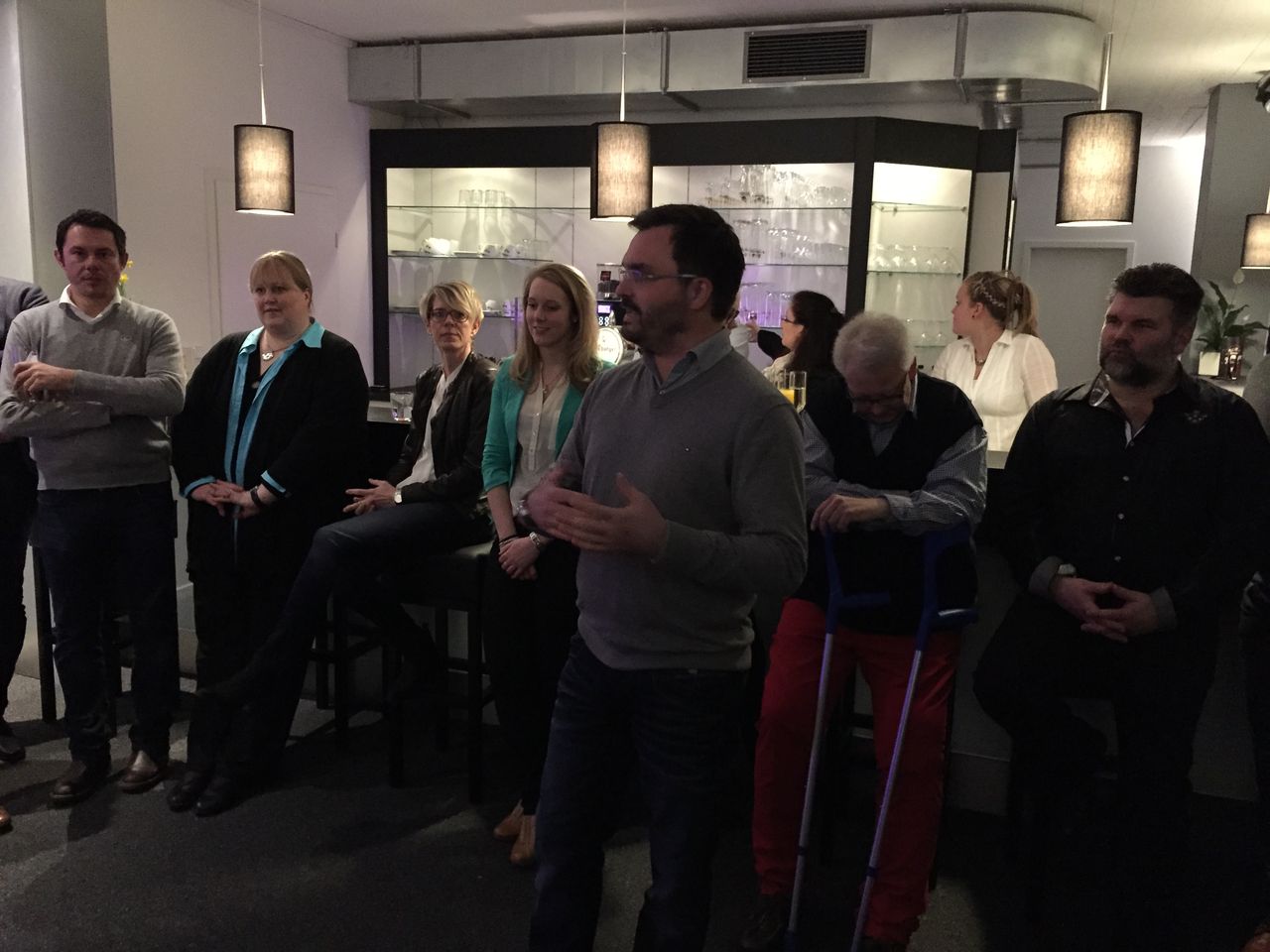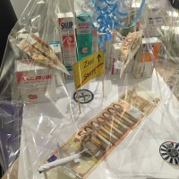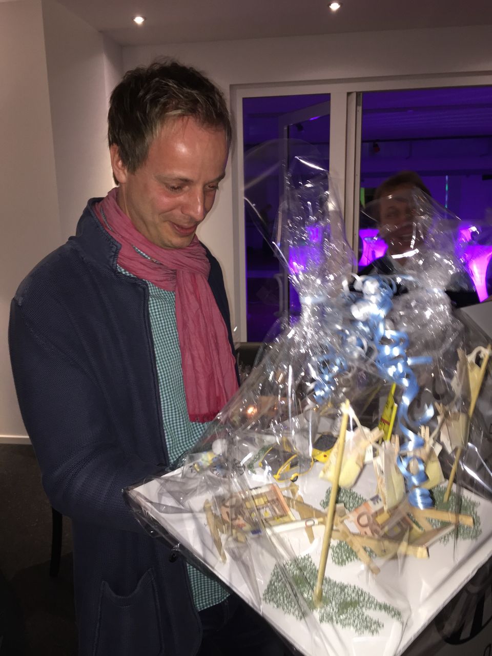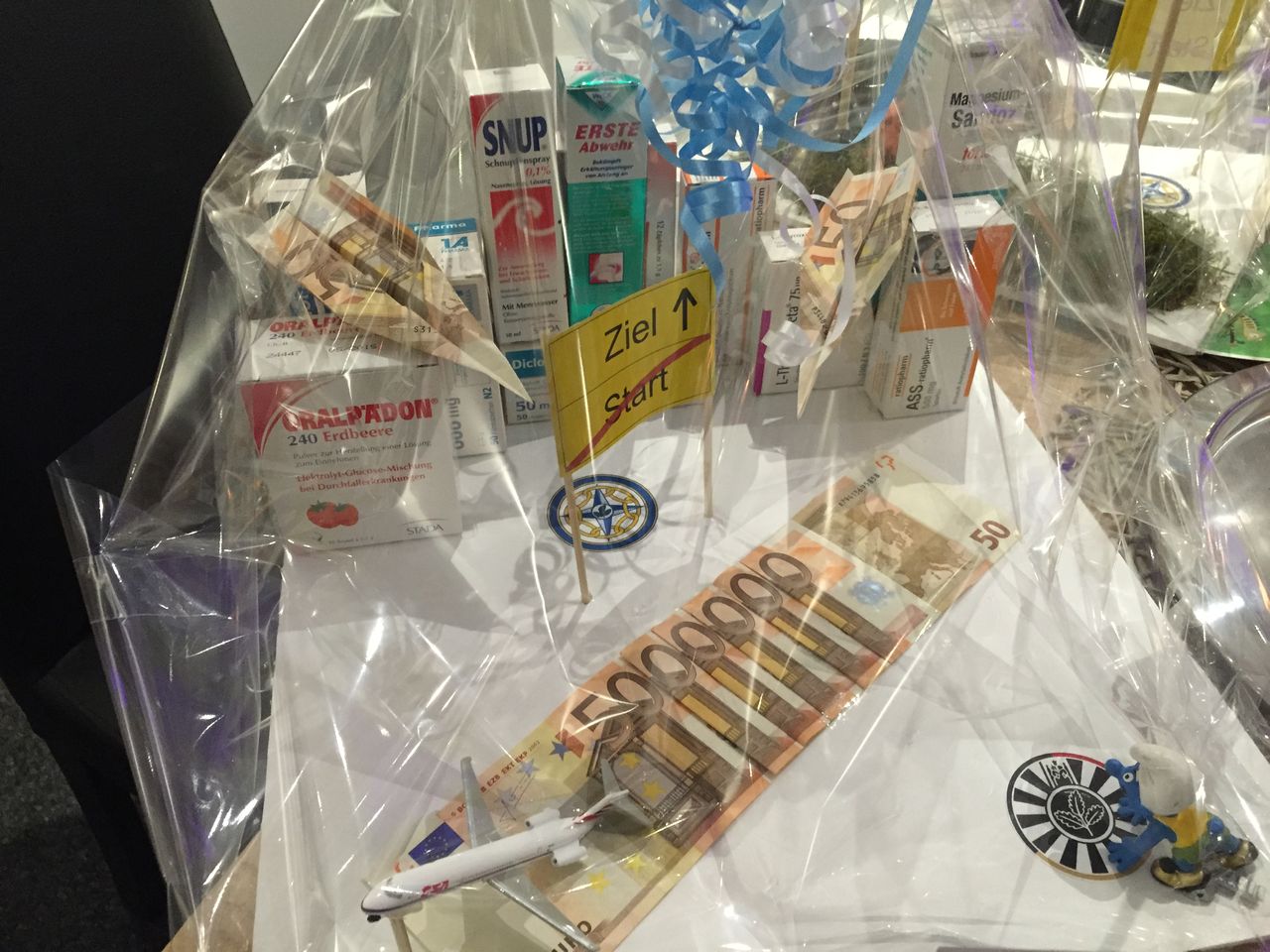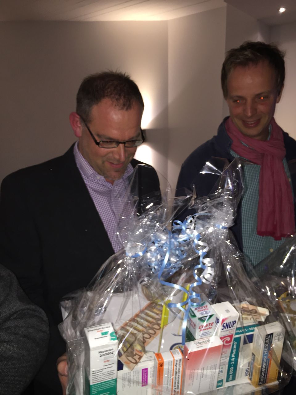 Etwa um 20 Uhr, d.h. gut 30 Minuten nach offiziellem Beginn der Party, wurde Abschiedsgeschenke übergeben. Ob des Anlasses wirkten die Jungs recht betreten, als jeder nochmal einige Worte zum Tischleben und zum nun anstehenden „Ausschluss“ sagen durfte. Da half es auch nicht, dass jeder ein eigenes Geschenke-Thema bekommen hat (siehe Bilder). Am auffälligsten ist sicherlich das Geschenk unseres Apothekers Bakker.
