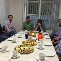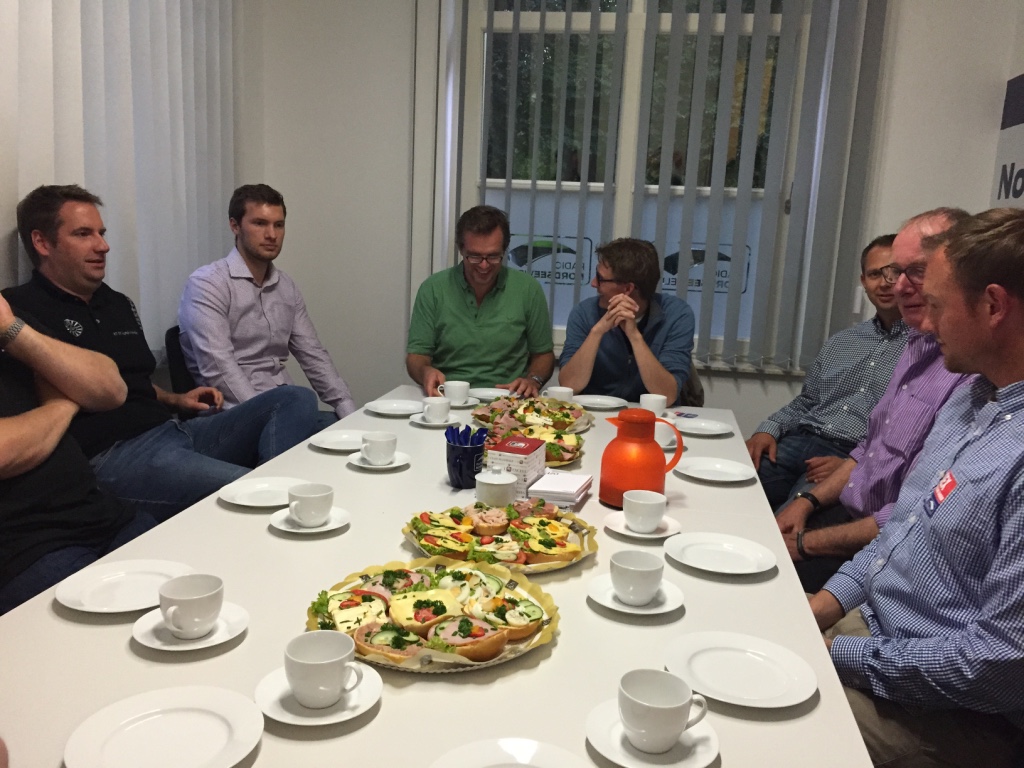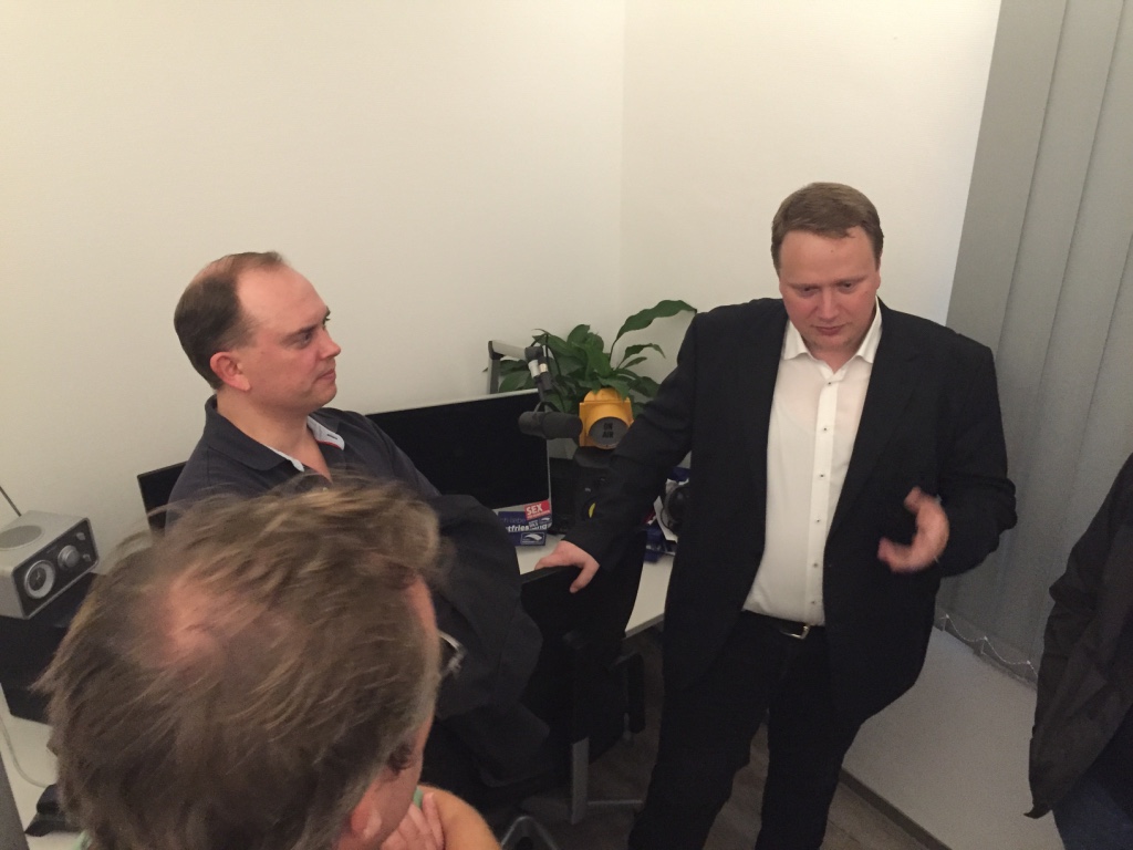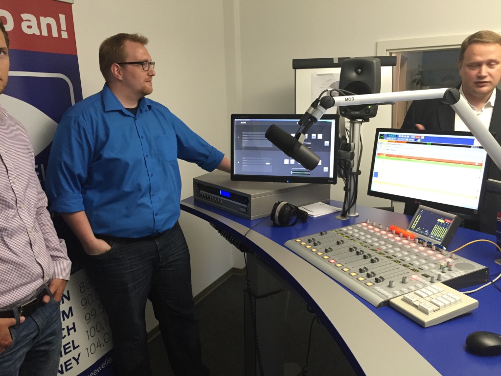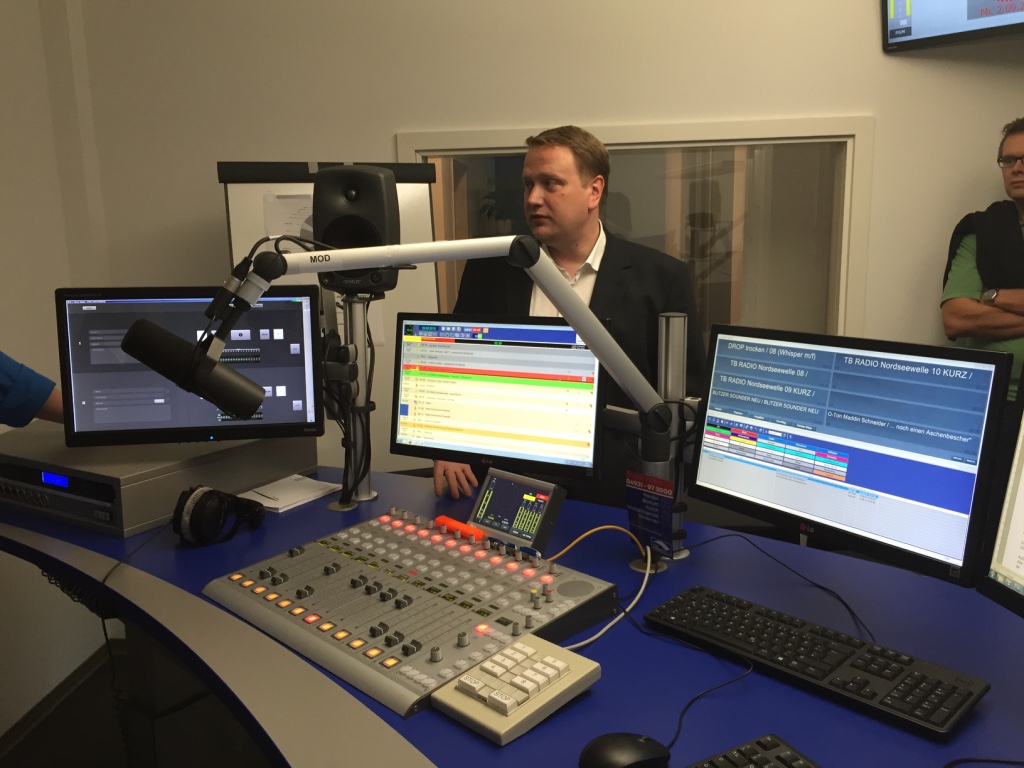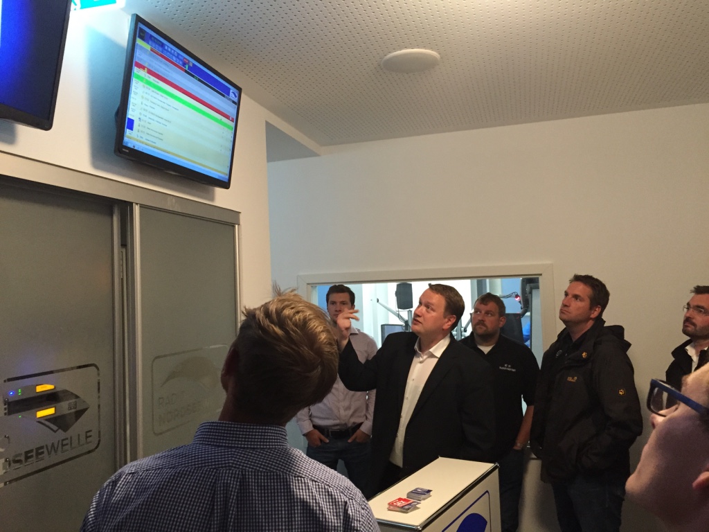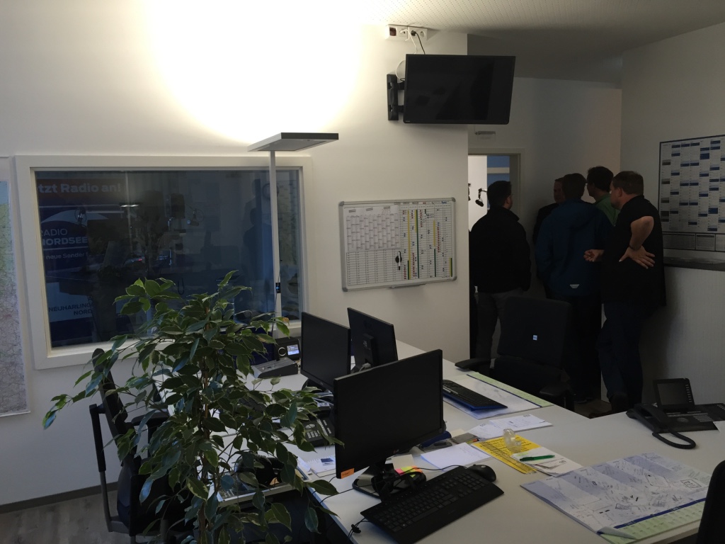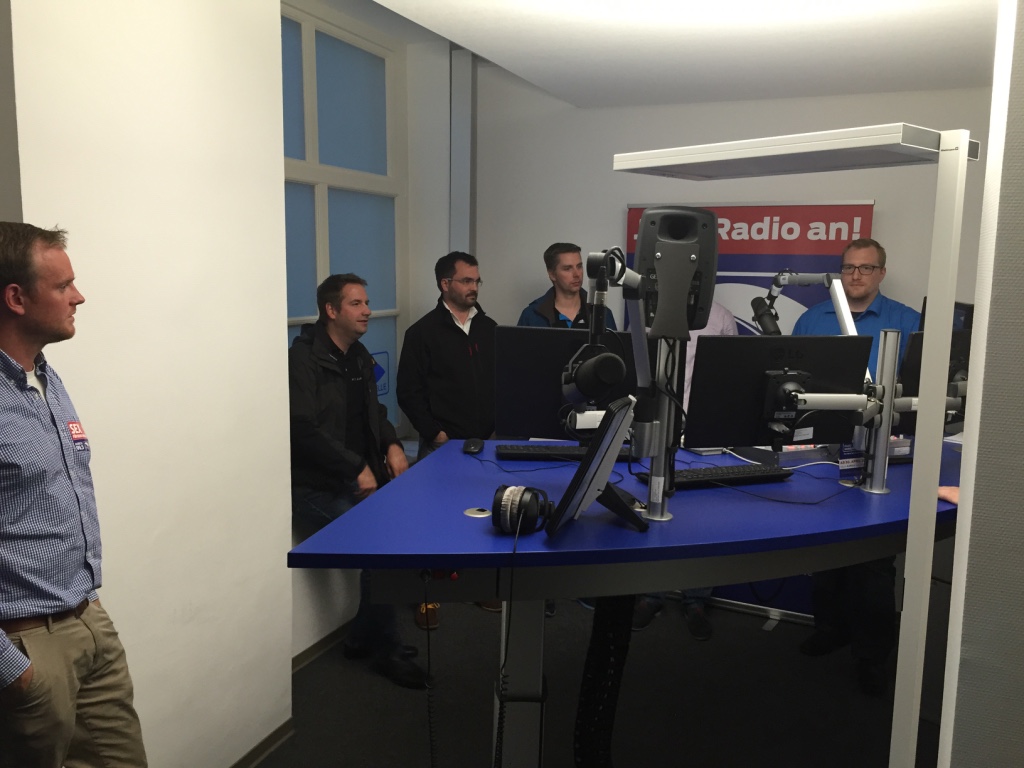 Ja, was war das denn für ein aussergewöhnliches Entrée zu diesem spätsommerlichen Tischabend in Norden? Kanne (?) hatte freundlicherweise eine Führung durch die Studios des jüngst gegründeten Radiosenders „Radio Nordseewelle“ organisiert und erlaubte uns so spannende Einblicke hinter die radiolichen Kulissen dieses ostfriesischen Medienleuchtturms. Angefangen mit einem Blick auf die Technik hinter dem ganzen Radiotreiben hat uns Geschäftsführer Maik Neudorf gleich in seinen Bann gezogen. Unglaublich, wie viel Technik benötigt wird, damit eine der traditionellsten Übertragungsarten überhaupt genießbar durch die Lautsprecher tönen kann! Weiter ging es dann direkt in eines der Aufnahmestudios zu Abendmoderator Norman Fleischer. Auch hier folgten einige Erklärungen zur Technik. Eine Fragen-und-Antwort-Runde konnte dann auch Detailfragen rund um die Radiowelt klären. Zum Abschluss wurden wir noch fürstlich zu Kaffee, Kaltgetränken und belegten Brötchen eingeladen (aber bitte nicht Björn Haver erzählen!). Um kurz nach halb 9 ging es rüber zum Reichshof, sodass der offizielle Teil um 20:48 Uhr eröffnet werden konnte.
