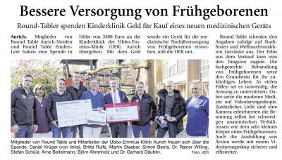 Zeitungsbericht Spendenübergabe an die UEK Aurich